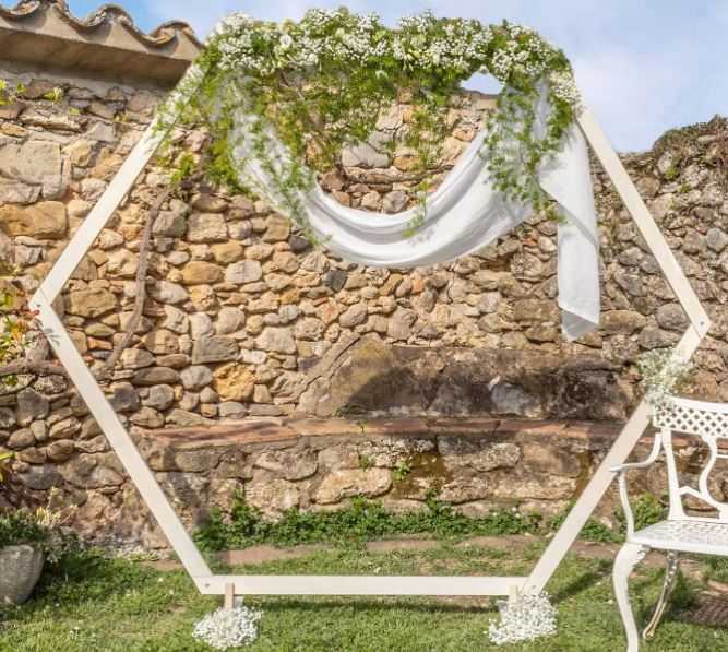 l’arche hexagonale en bois devient le décor central de votre cérémonie.