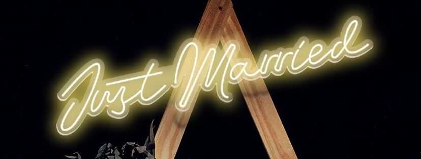 Accrochez le néon Just Married sur votre arche en bois, votre mur de fleurs